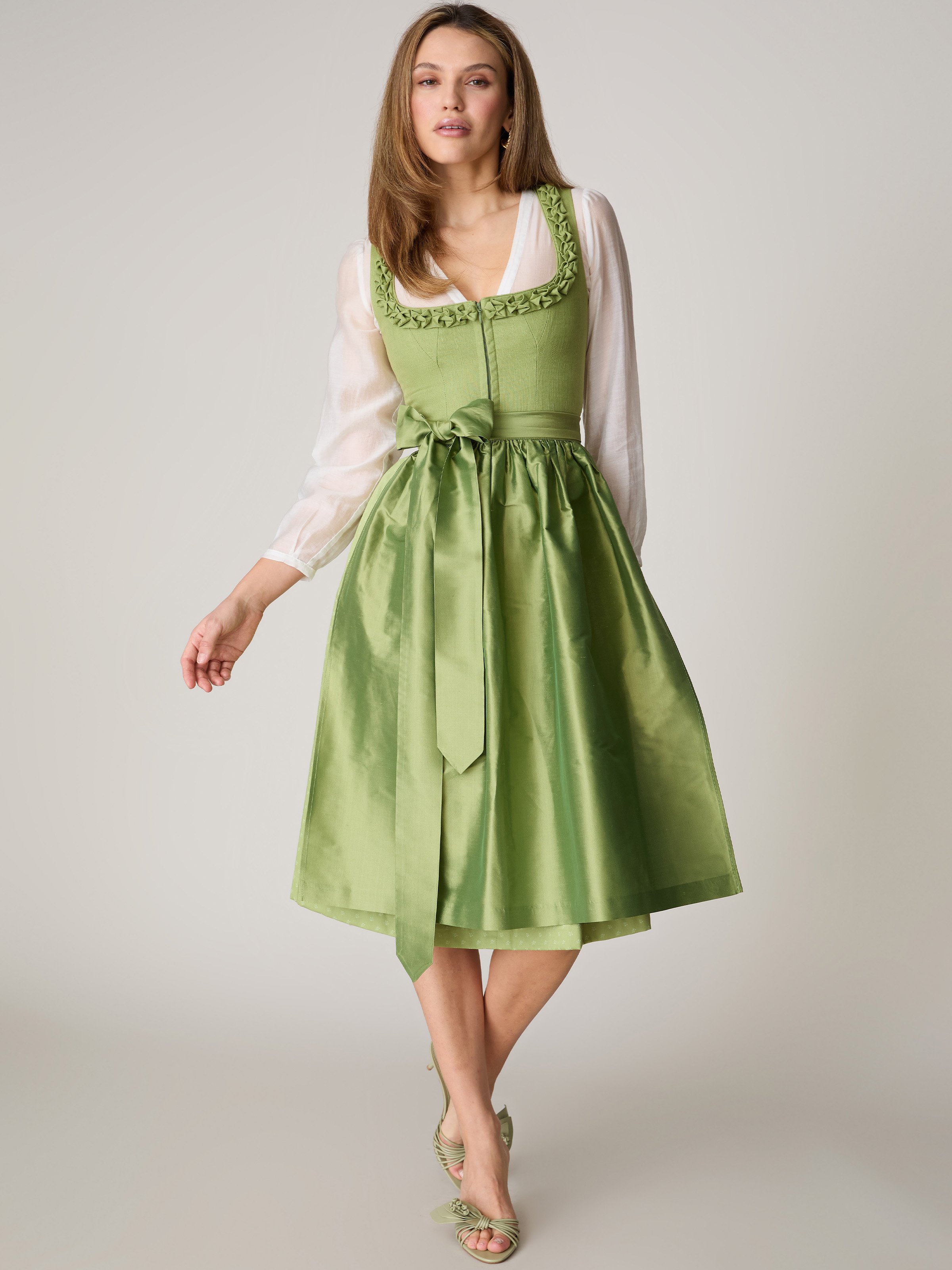 Hellgrünes Dirndl mit Froschgoscherln - EWALINA MATCHA