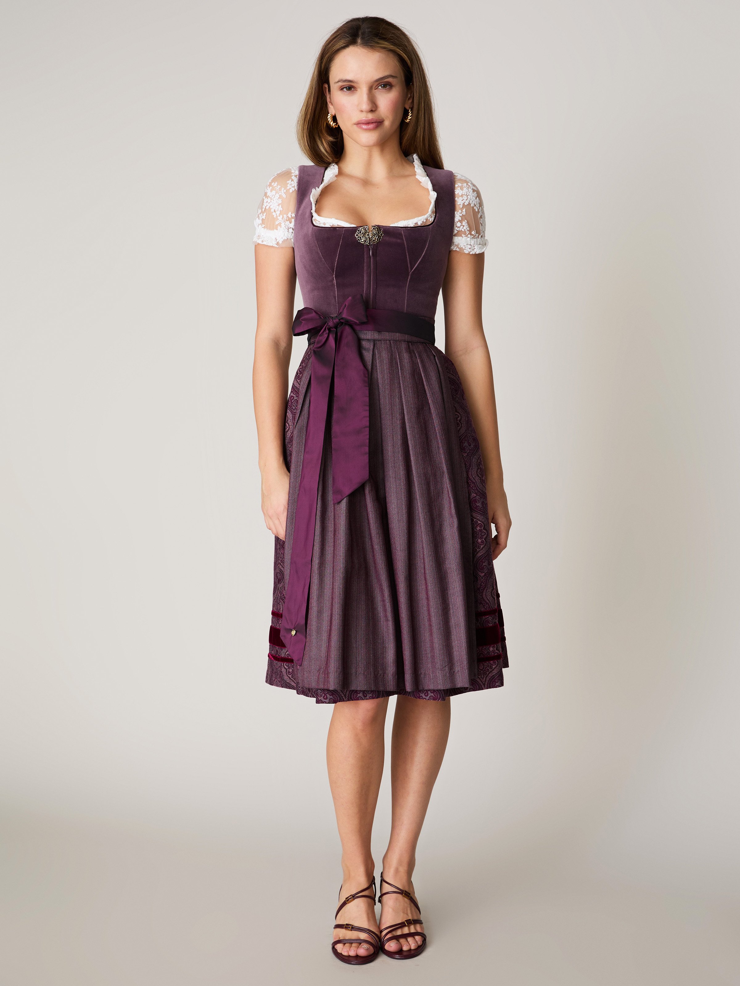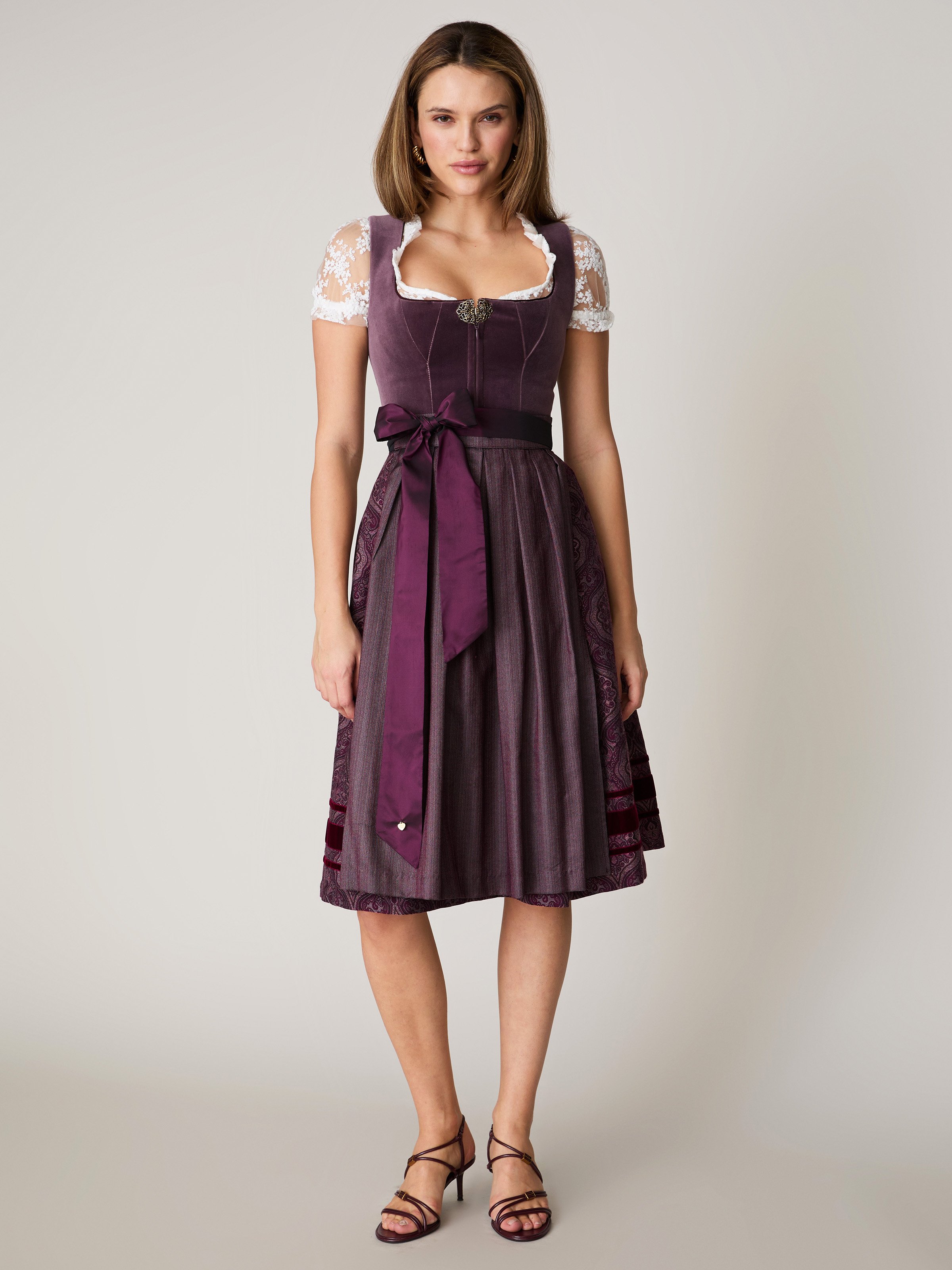 Pflaumenfarbenes Samtdirndl mit Zierschnalle - SARAH PLUME