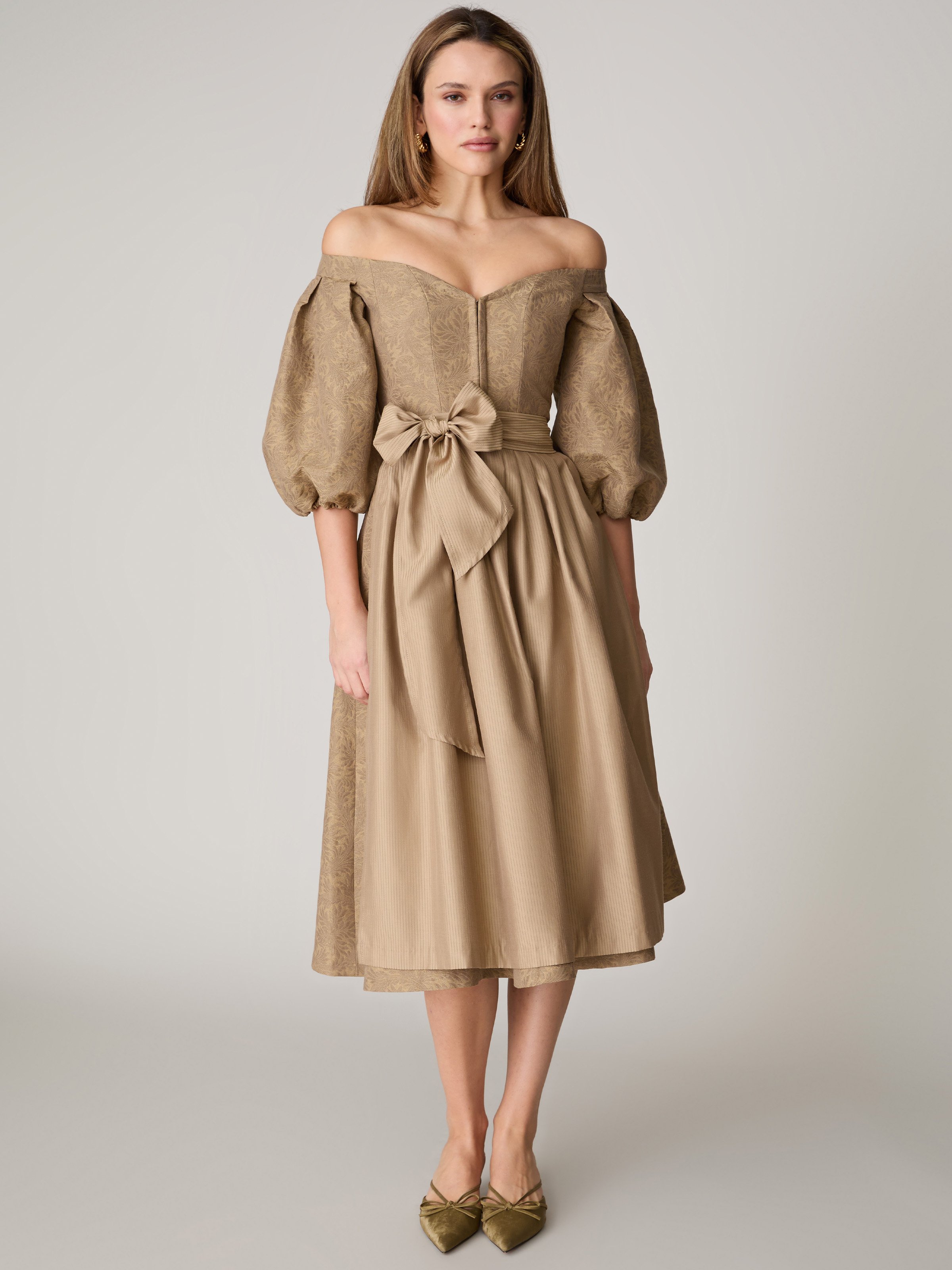 Beiges Dirndl mit Off-Shoulder Ausschnitt - CARMEN LAVISH OCKER