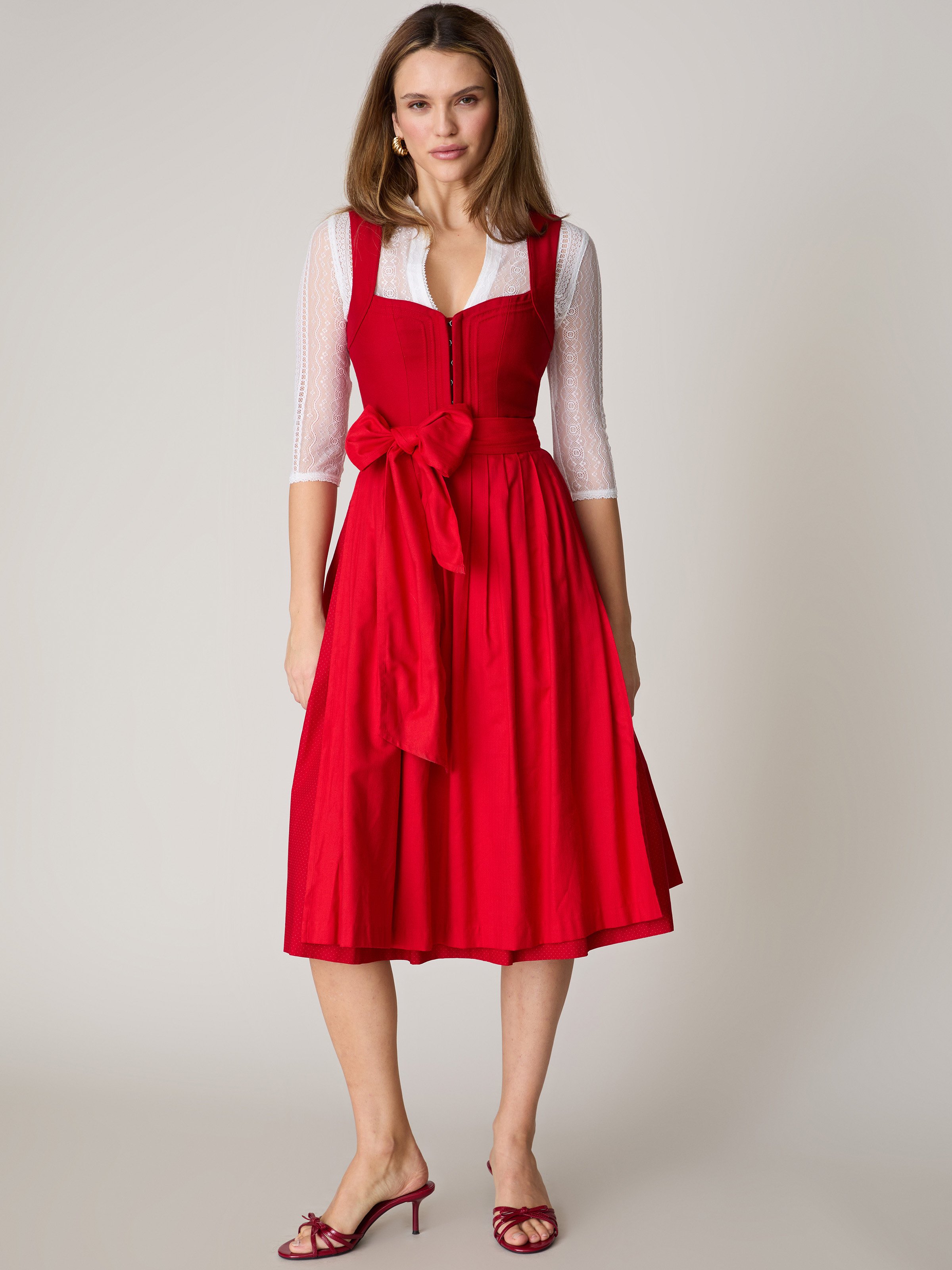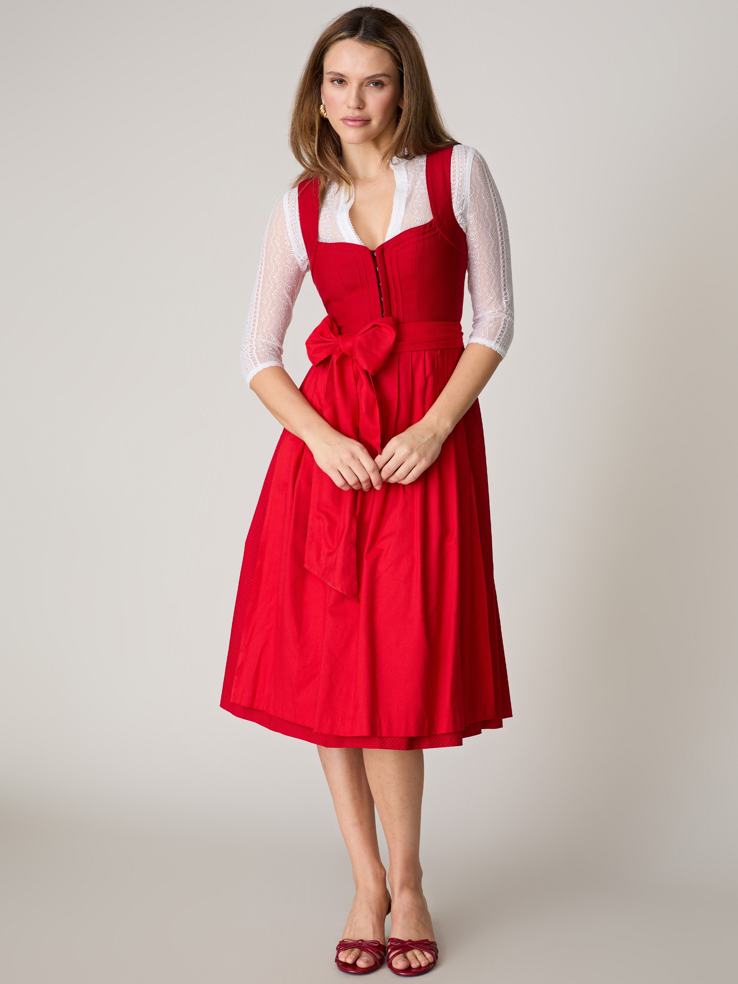 Dirndl in kräftigem Rot mit Schnurrsteppung - NELLIE PLAIN RED