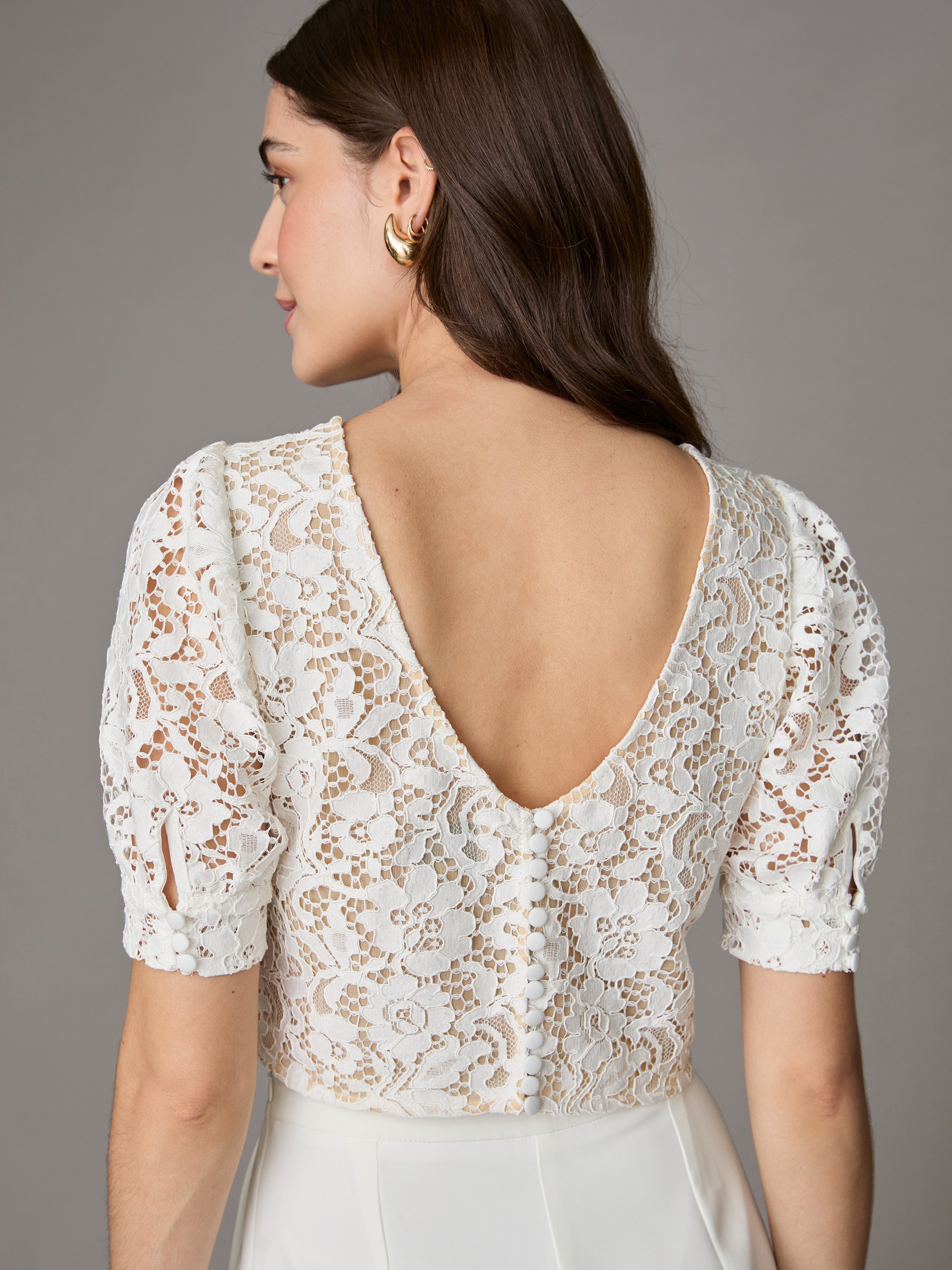 Cropped Braut-Top aus Blumenspitze in Crémeweiß - LAVENDER