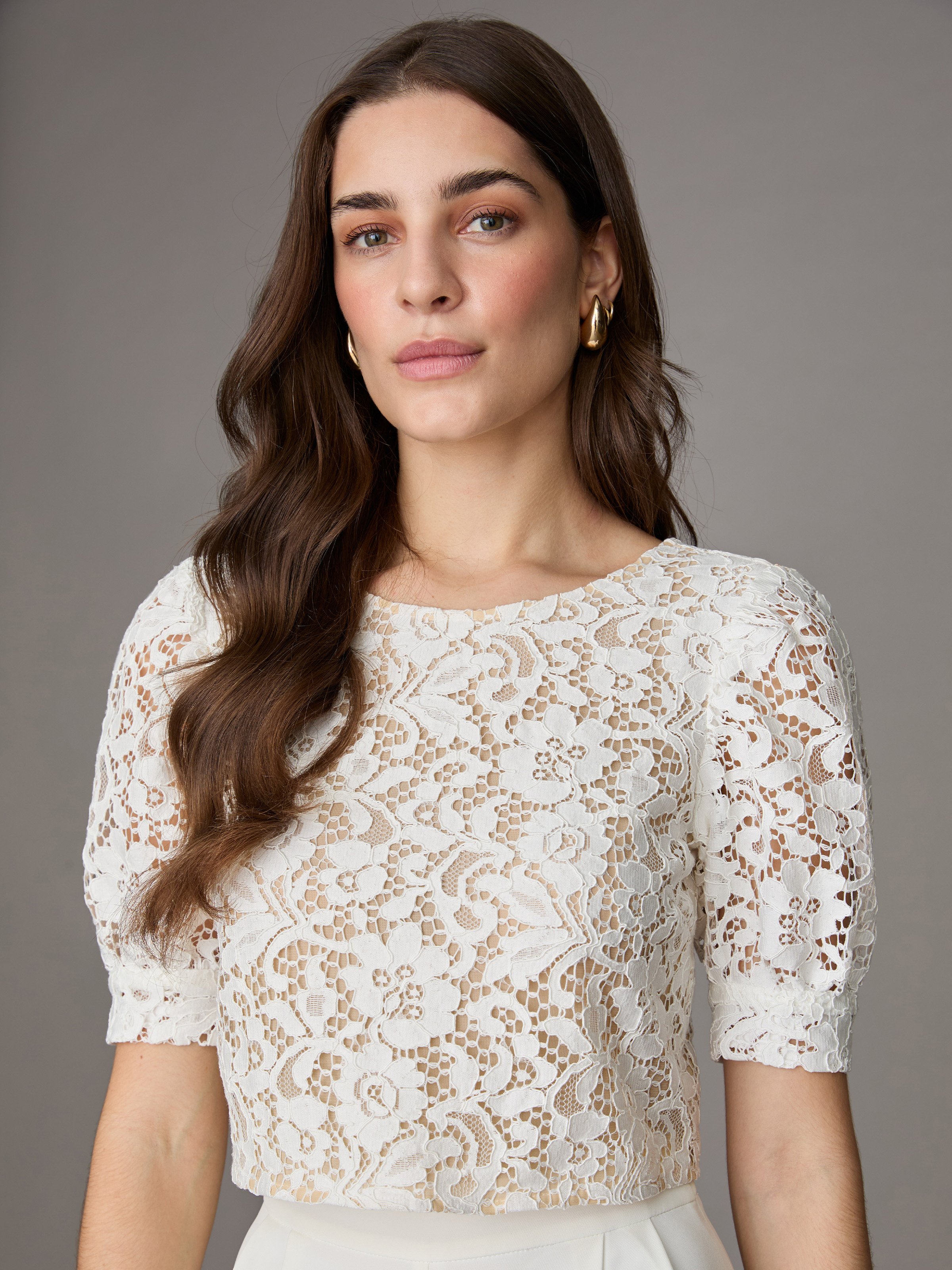 - Spitzentop mit zarten Puffärmeln