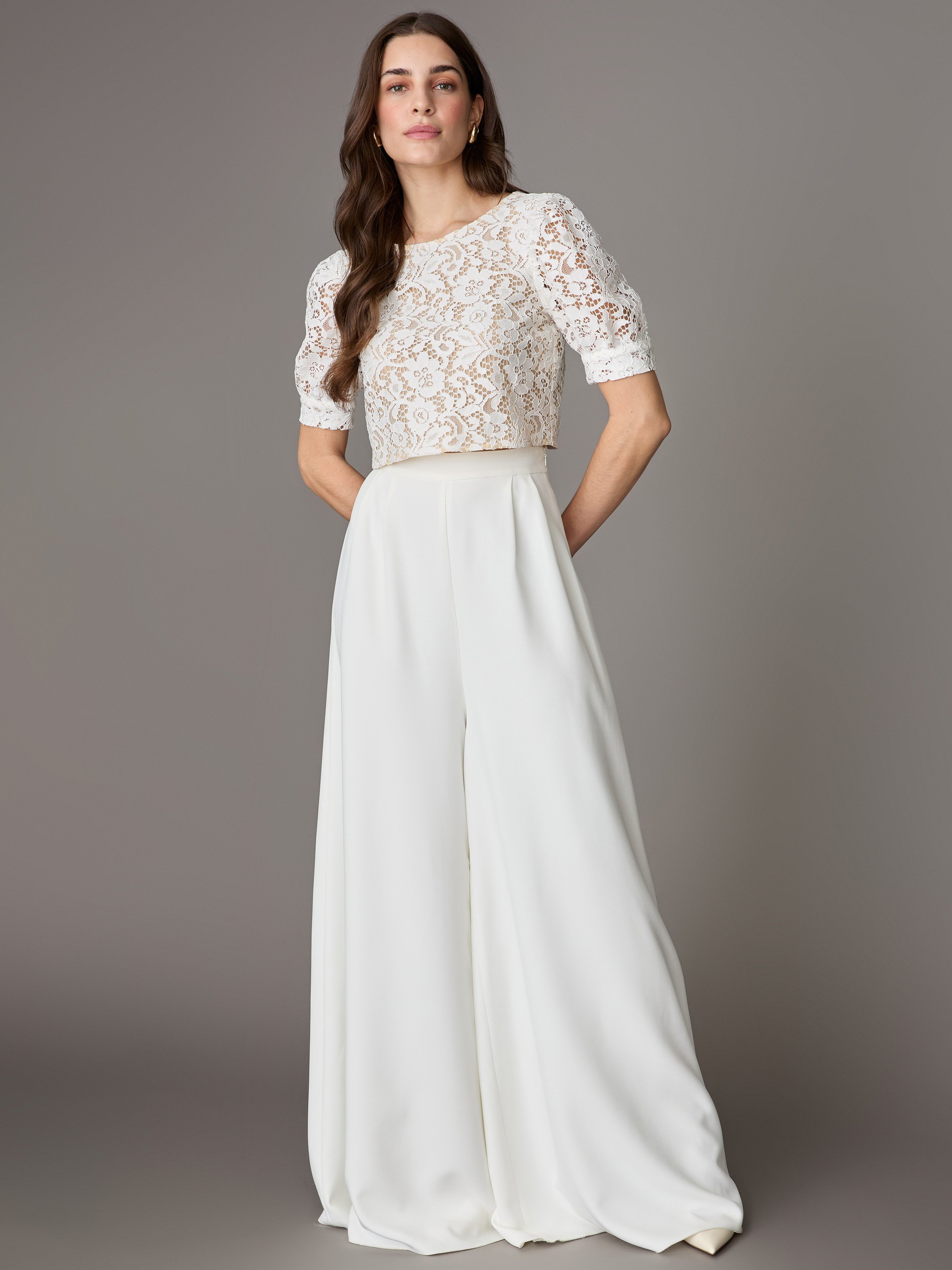 - Cropped Braut-Top aus Blumenspitze in Crémeweiß vom Designer Label LIMBERRY BRIDAL STUDIO