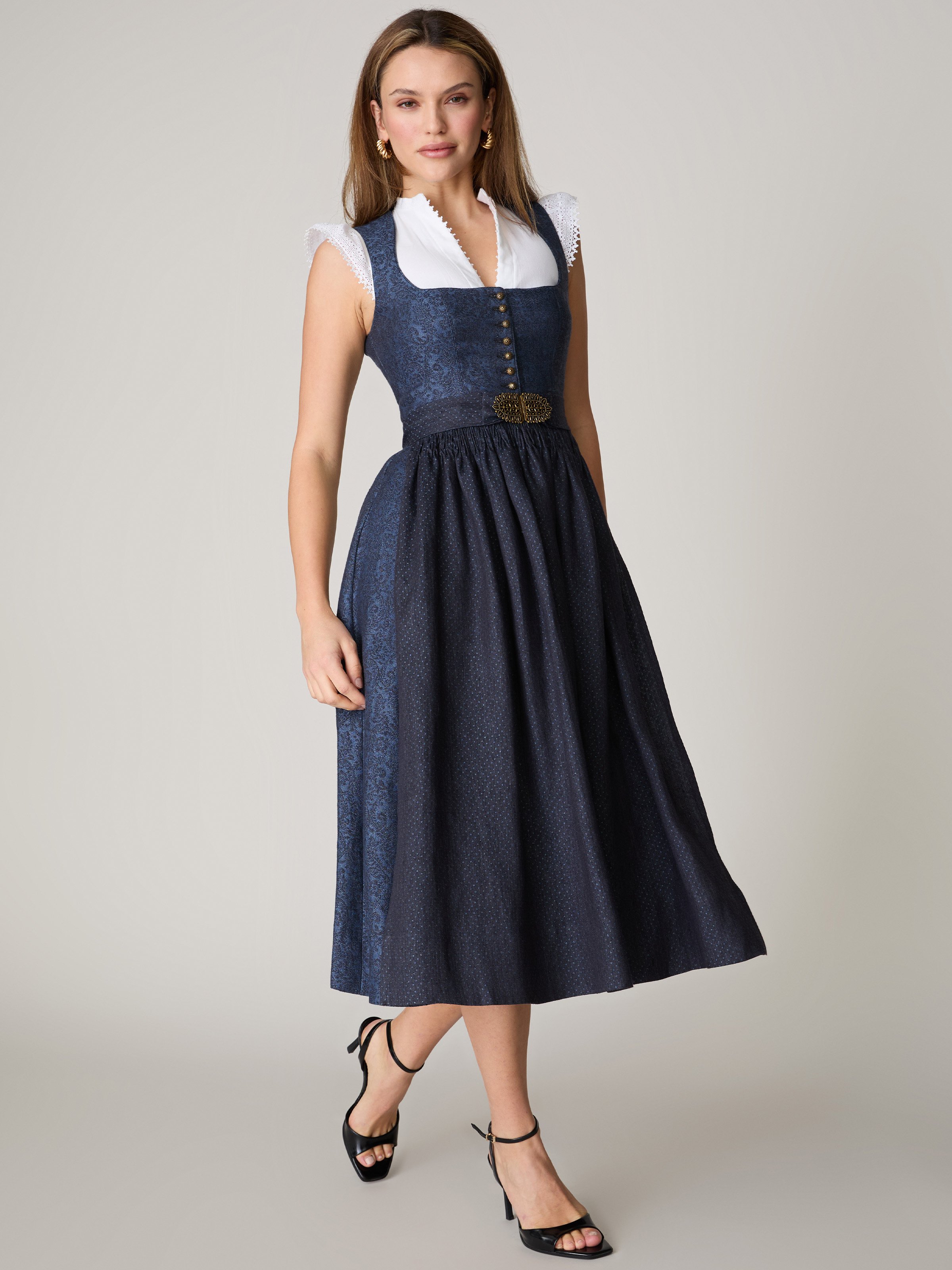 - Inklusive einer dunkelblauen Dirndlschürze mit Pünktchen