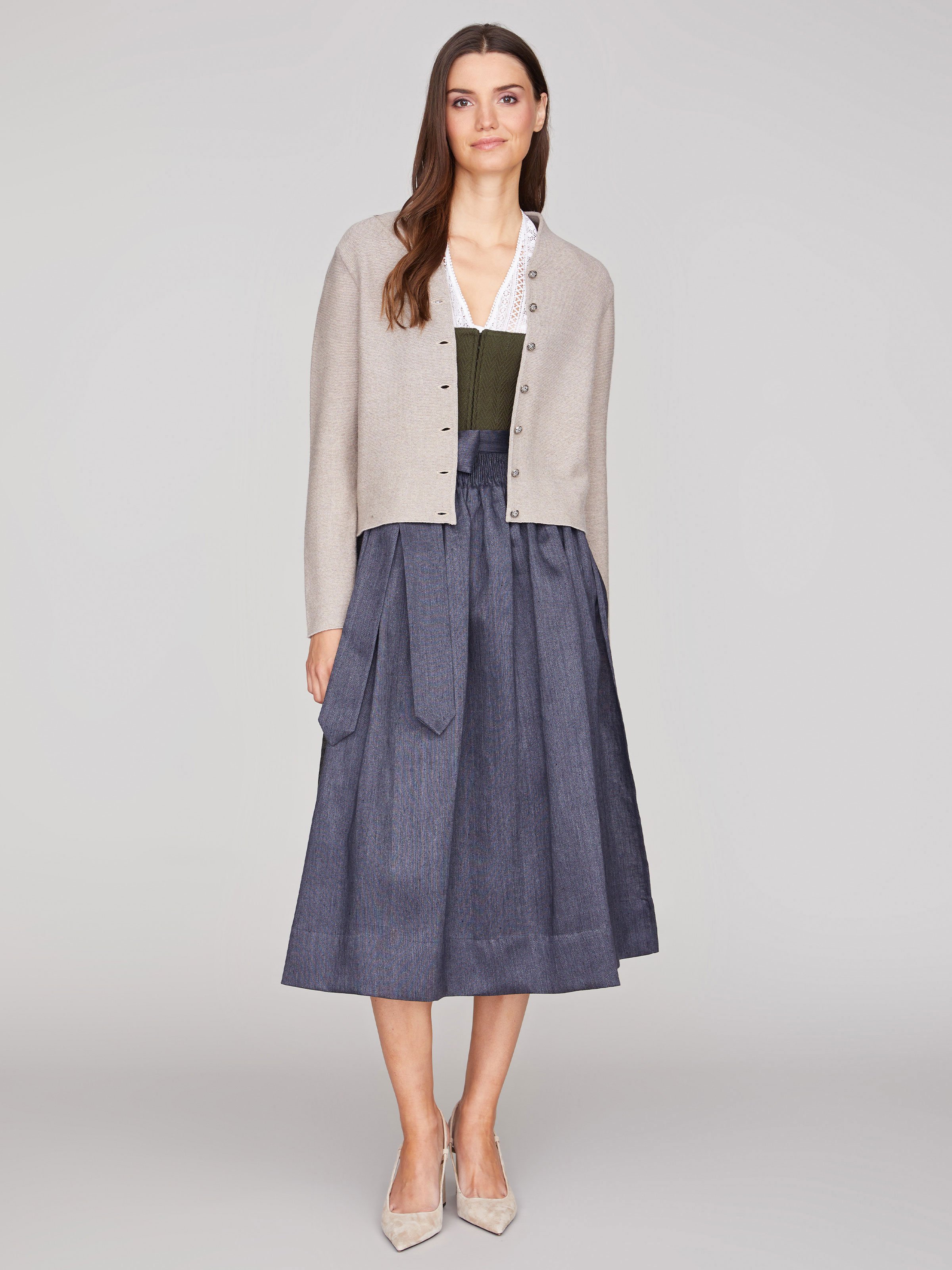 - Inklusive dunkelgrauer Dirndlschürze aus Leinen: gebunden oder mit edler goldener Schnalle