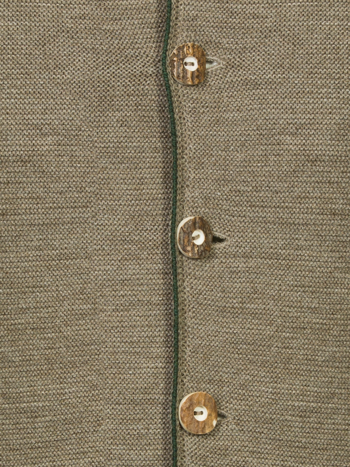 Lässiger Strickjanker mit Kapuze vom Designer Trachtenlabel Gottseidank . Die geerdete beige braune Optik des Modells “Johann” harmoniert je nach Lust und Laune perfekt zur Lederhosen oder auch jederzeit zur Jeans. Diese Strickjacke ist aus 100 % Wolle gefertigt und wird durch sieben Trachtenknöpfe an der Vorderseite sowie eine zarte Paspelierung in Dunkelgrün veredelt. Die schmale Passform und die Kapuze verschaffen dem Träger garantiert jede Menge Aufmerksamkeit.