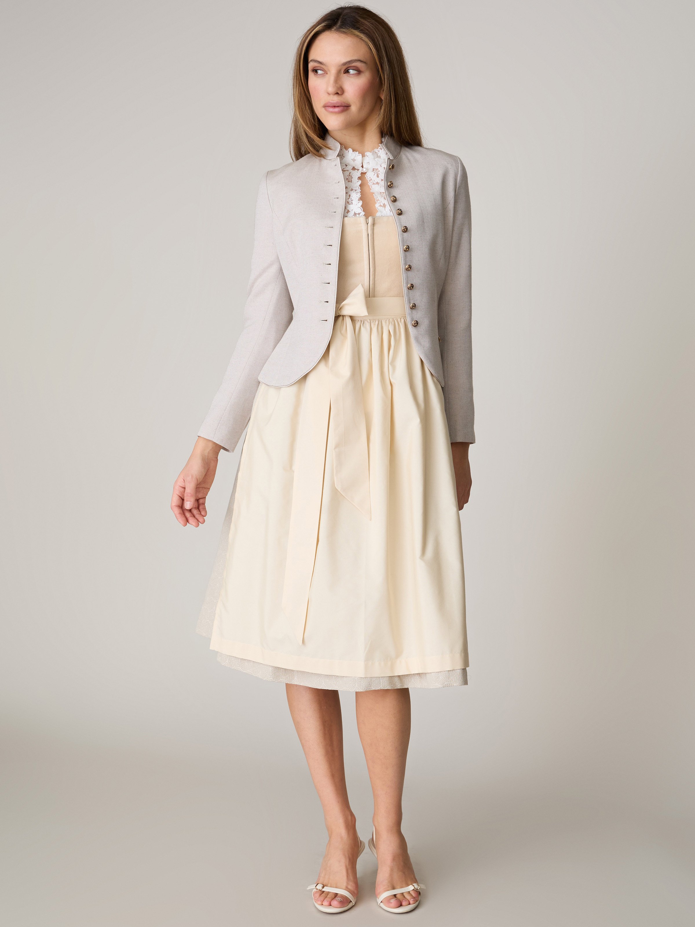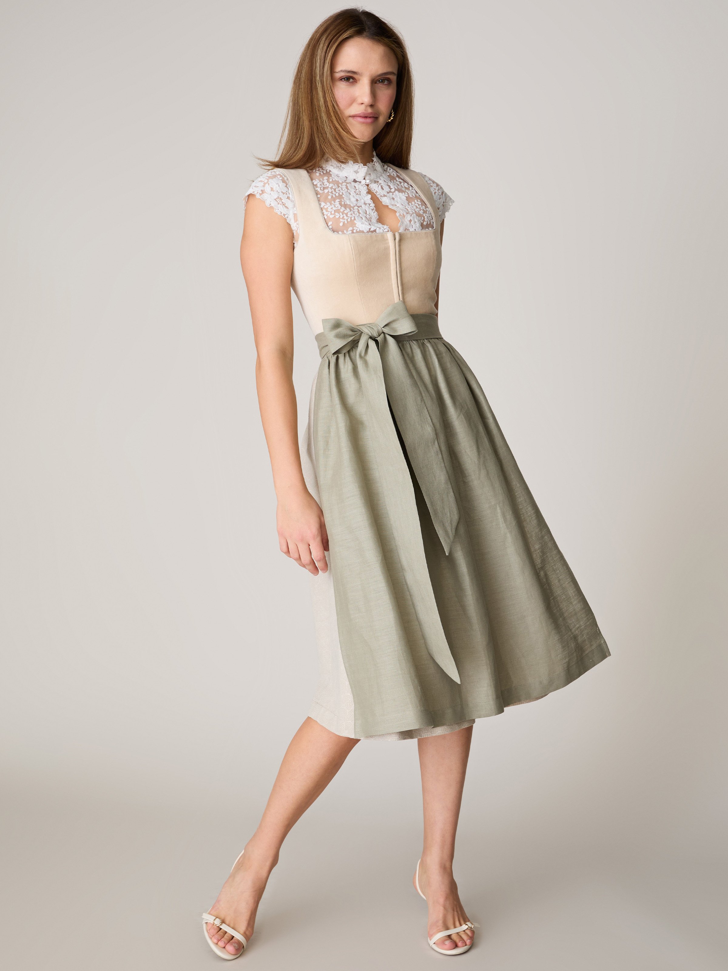 - Inklusive zwei Dirndlschürzen: eine Dirndlschürze in beige und eine salbeigrüne Dirndlschürze
