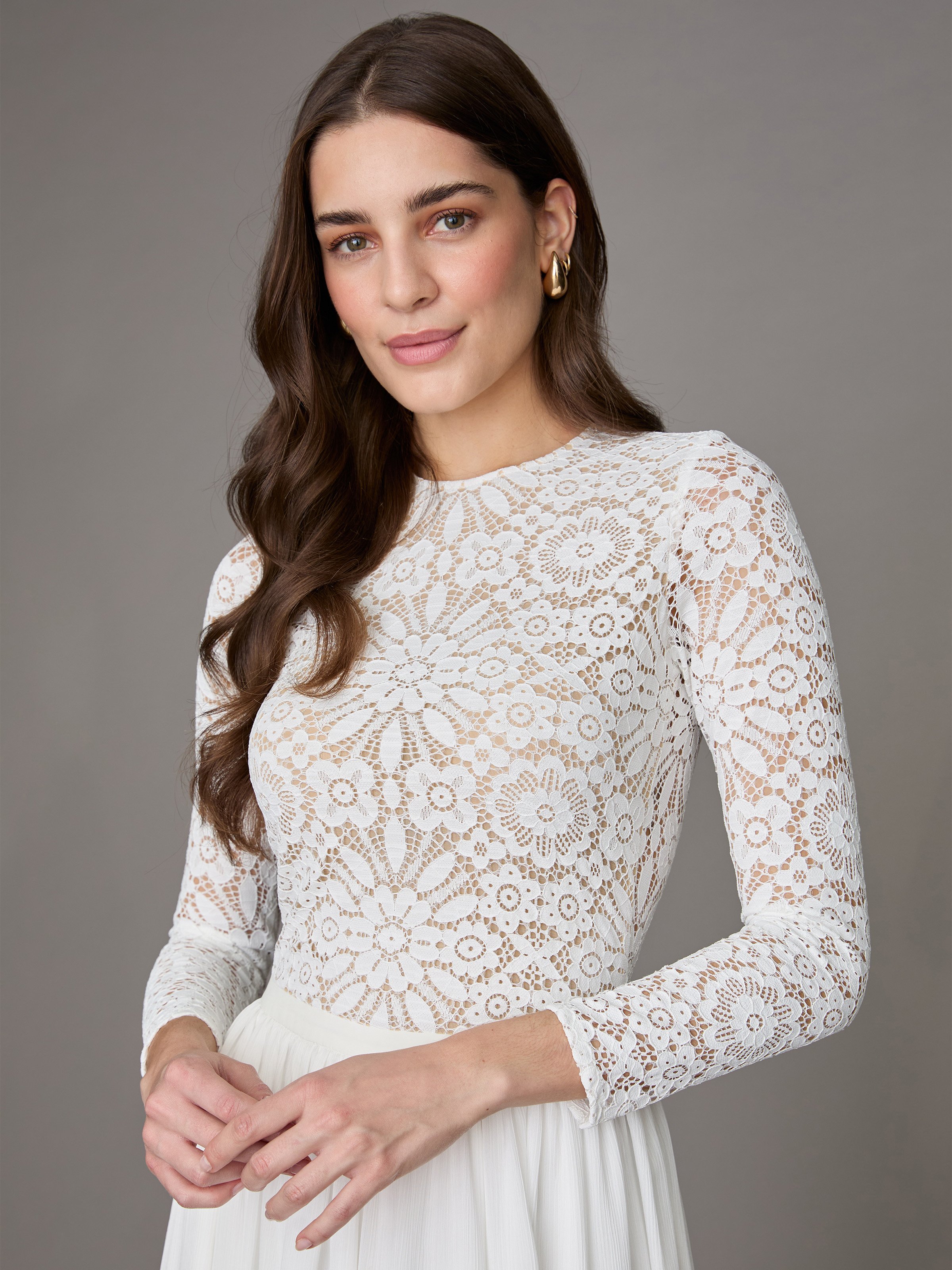 - Fein gearbeitetes Spitzenoberteil mit geschlossenem Rücken und Knopfleiste