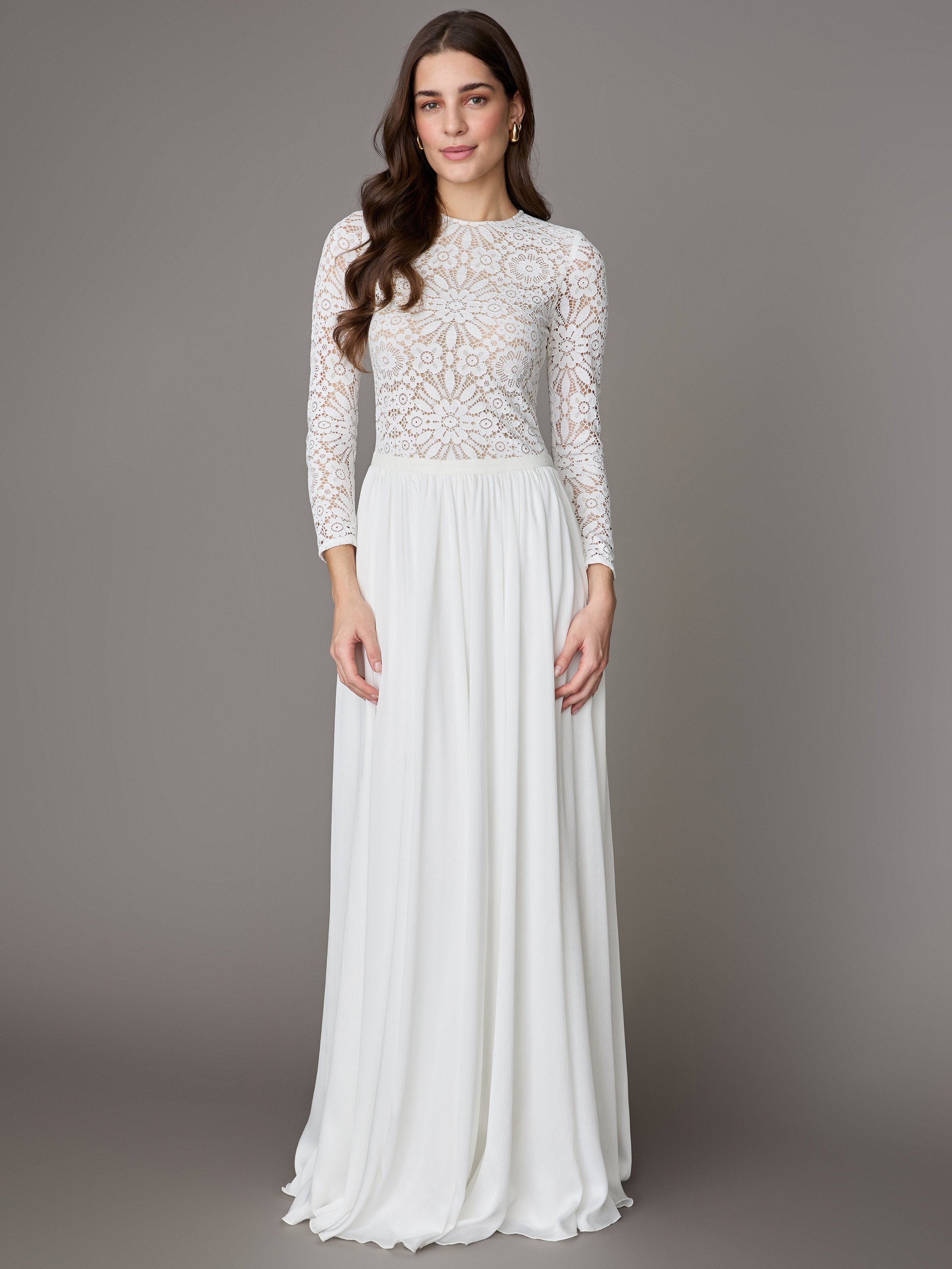 Brautkleid mit langarm Spitzenoberteil - NORABELLE