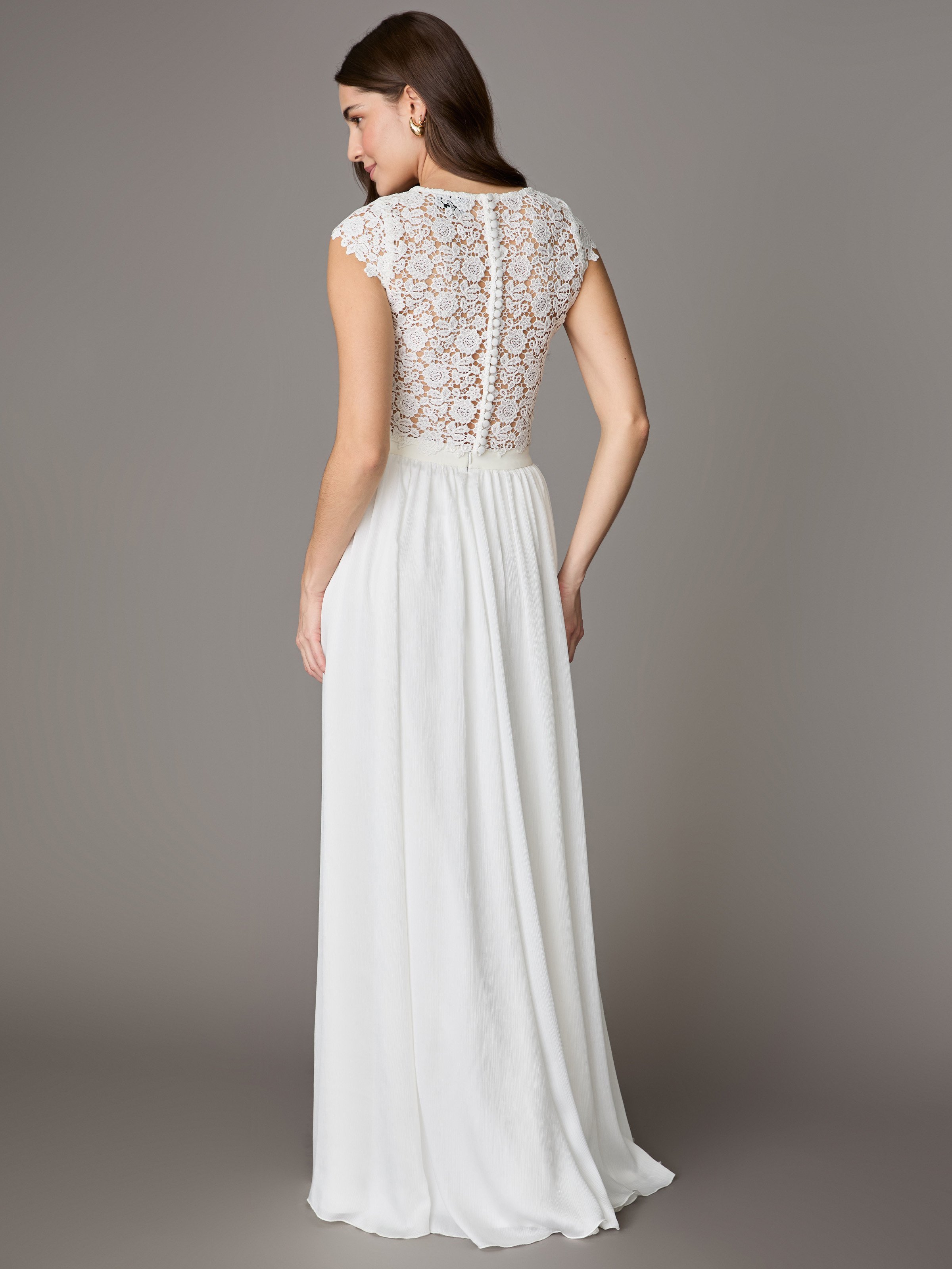 - Bodenlanger Schnitt mit dezenter Schleppe