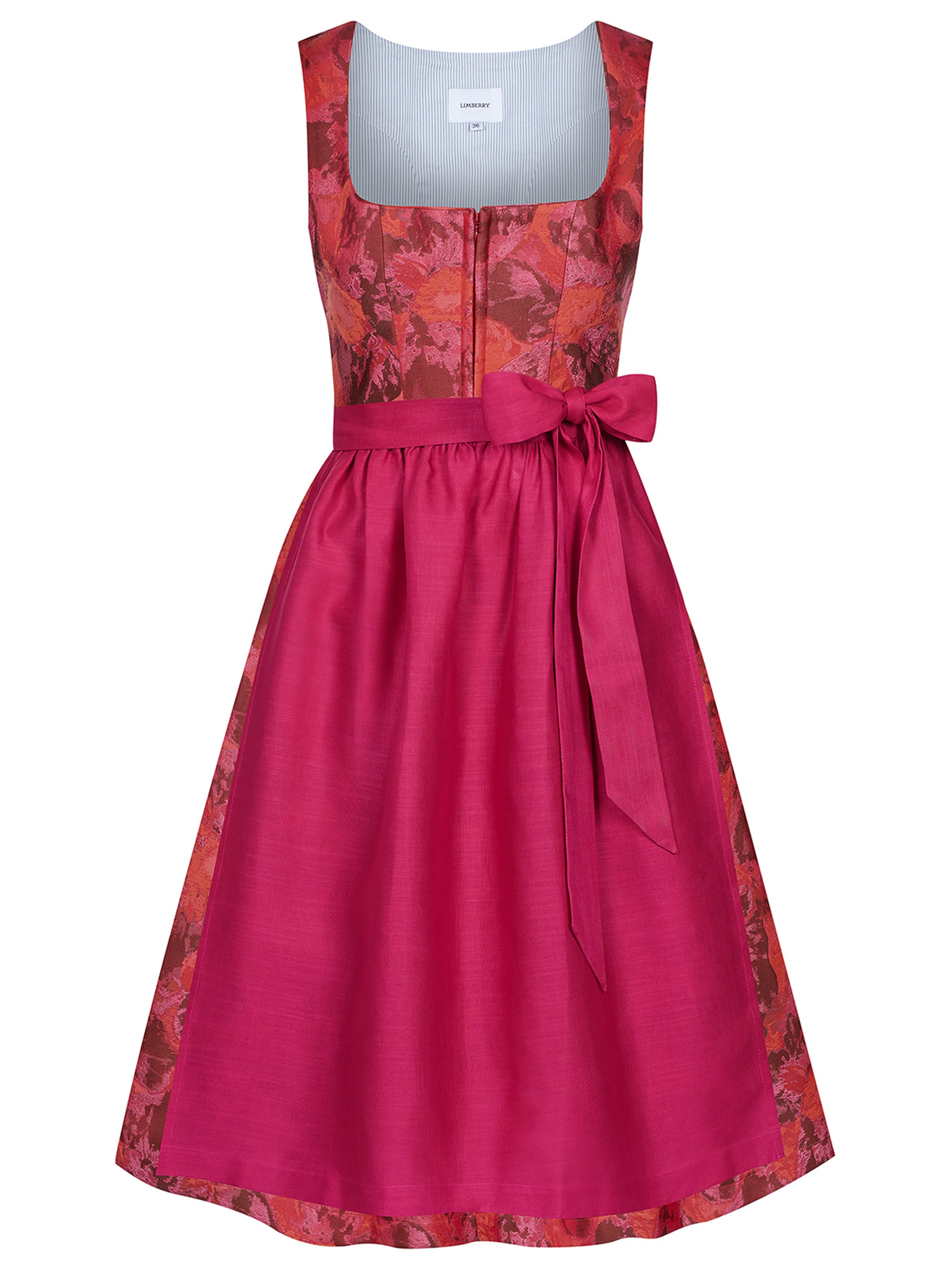 - Inklusive zwei Dirndlschürzen: eine kräftig rote Dirndlschürze und eine pinke Leinenschürze