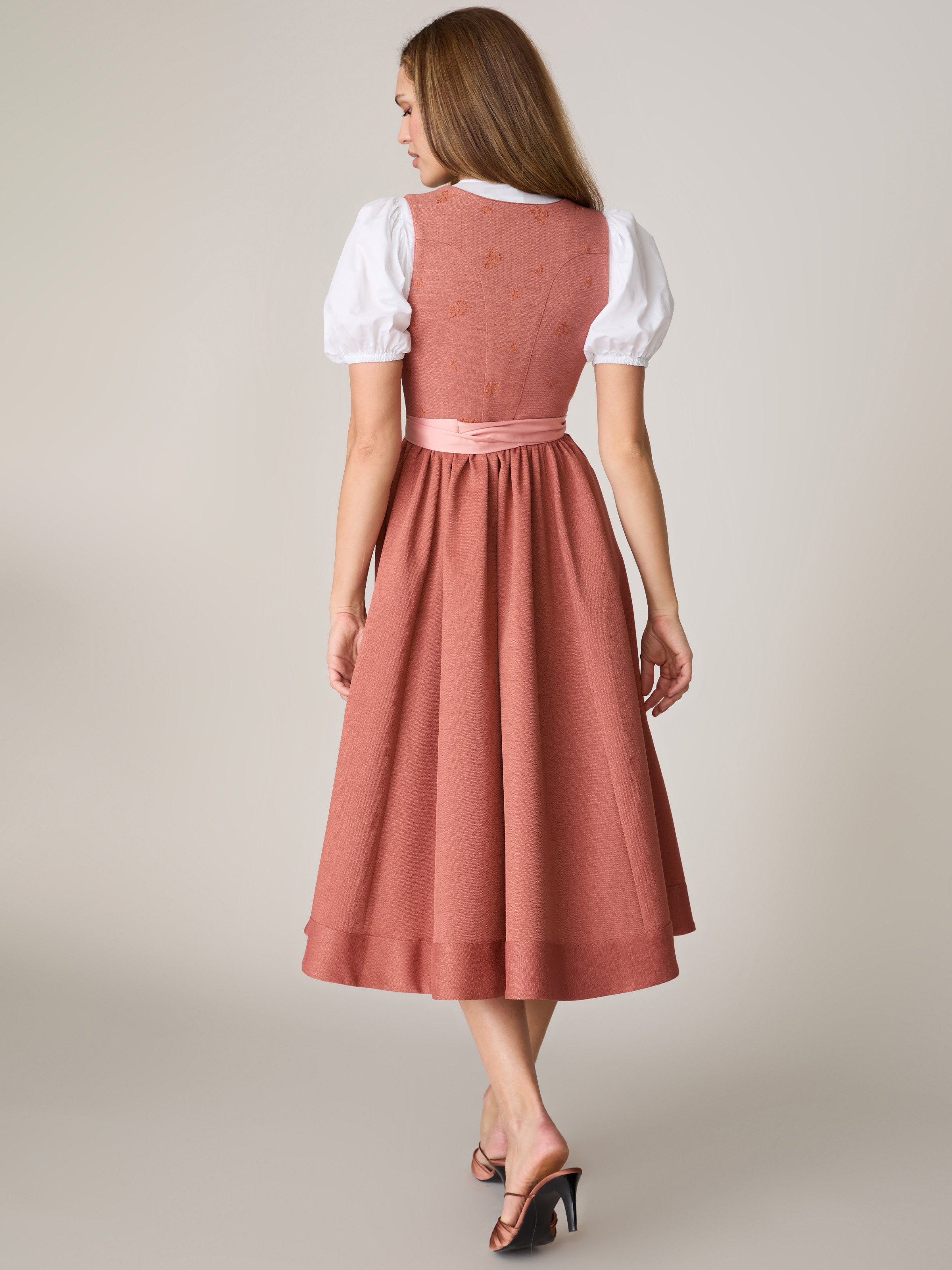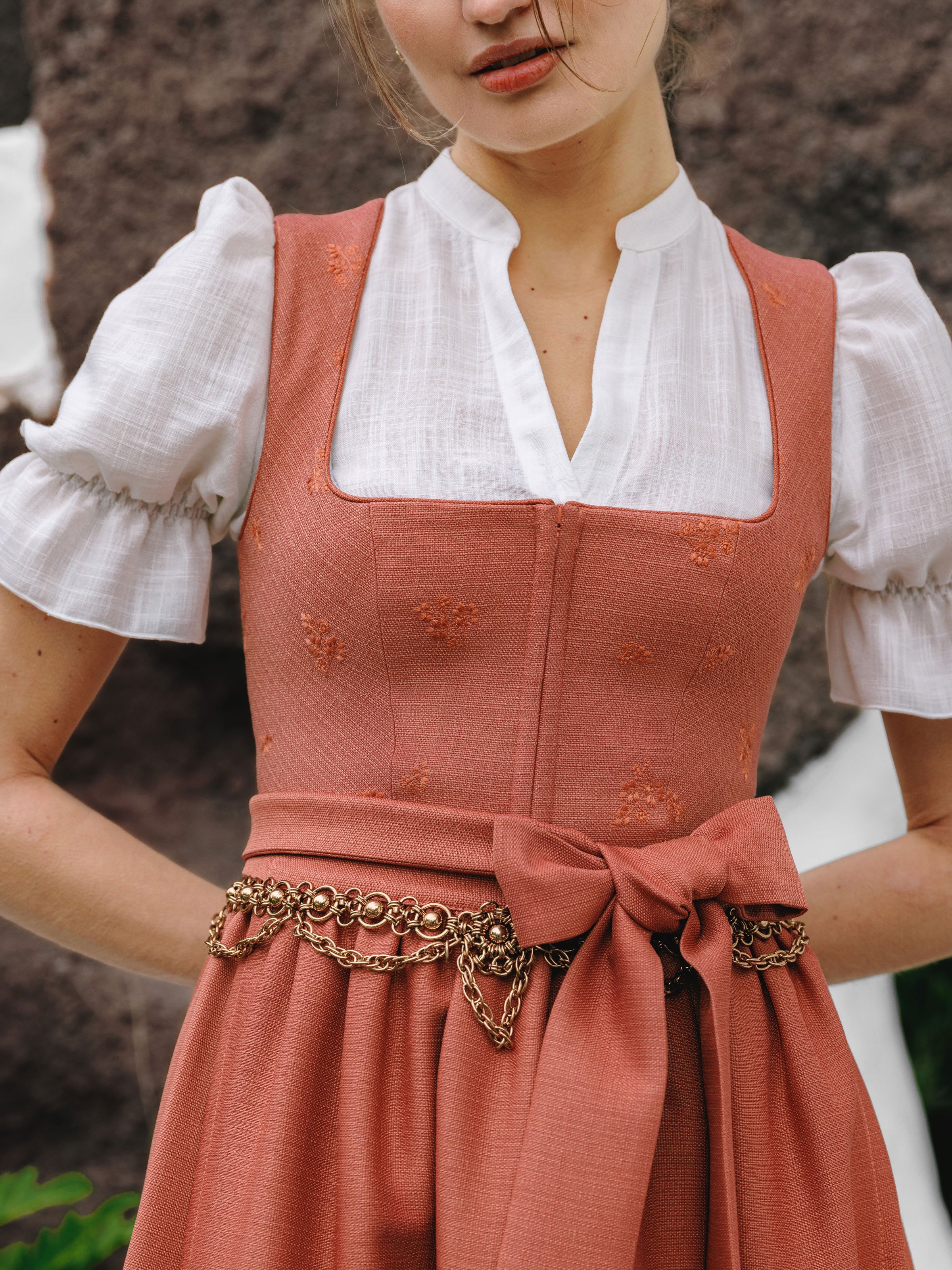 Das Dirndl Naya Brick Dust ist ein Statement in Trendfarbe: in einem warmen Terracotta mit modernem Charakter. Der Ton bringt sofort Leuchtkraft ins Gesicht und wirkt gleichzeitig hochwertig und stilvoll – ideal für alle, die in Tracht bewusst Farbe tragen möchten. Je nach Styling kann der Look ganz unterschiedlich ausfallen: von lässig bis chic. Styling-Tipp: Ein Kettengürtel setzt einen modernen Akzent und macht den Look noch besonderer.