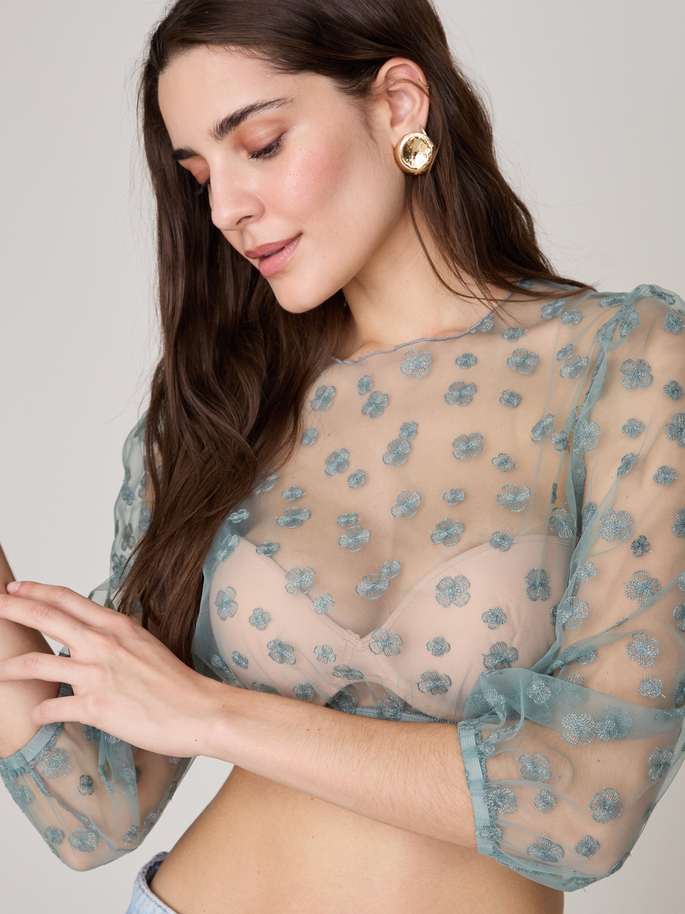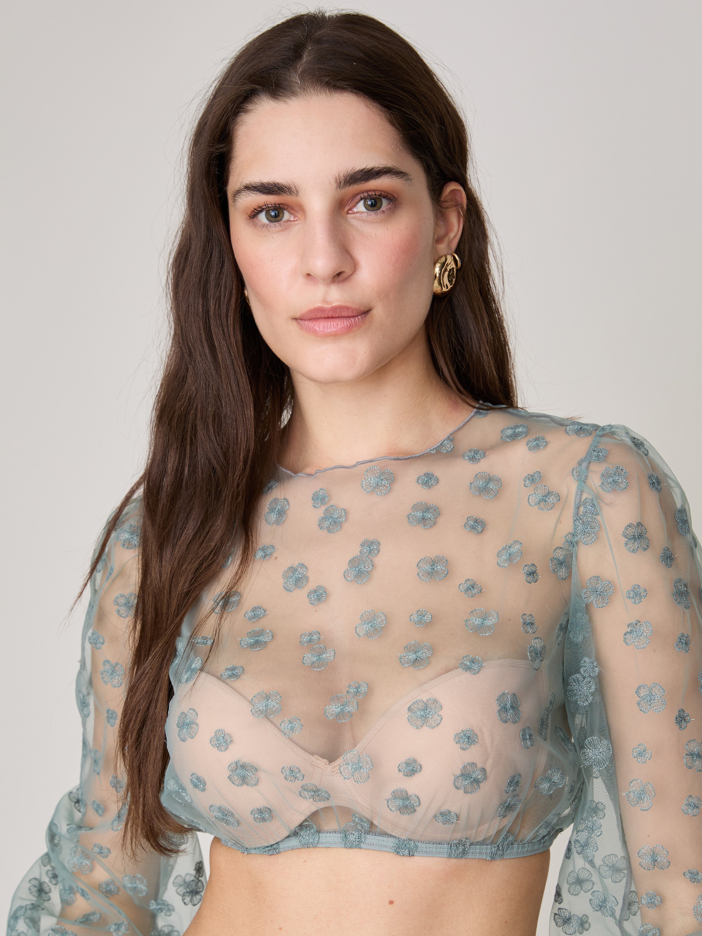 Dirndlbluse in Salbei mit Blumenmuster - AMIRA SALBEI
