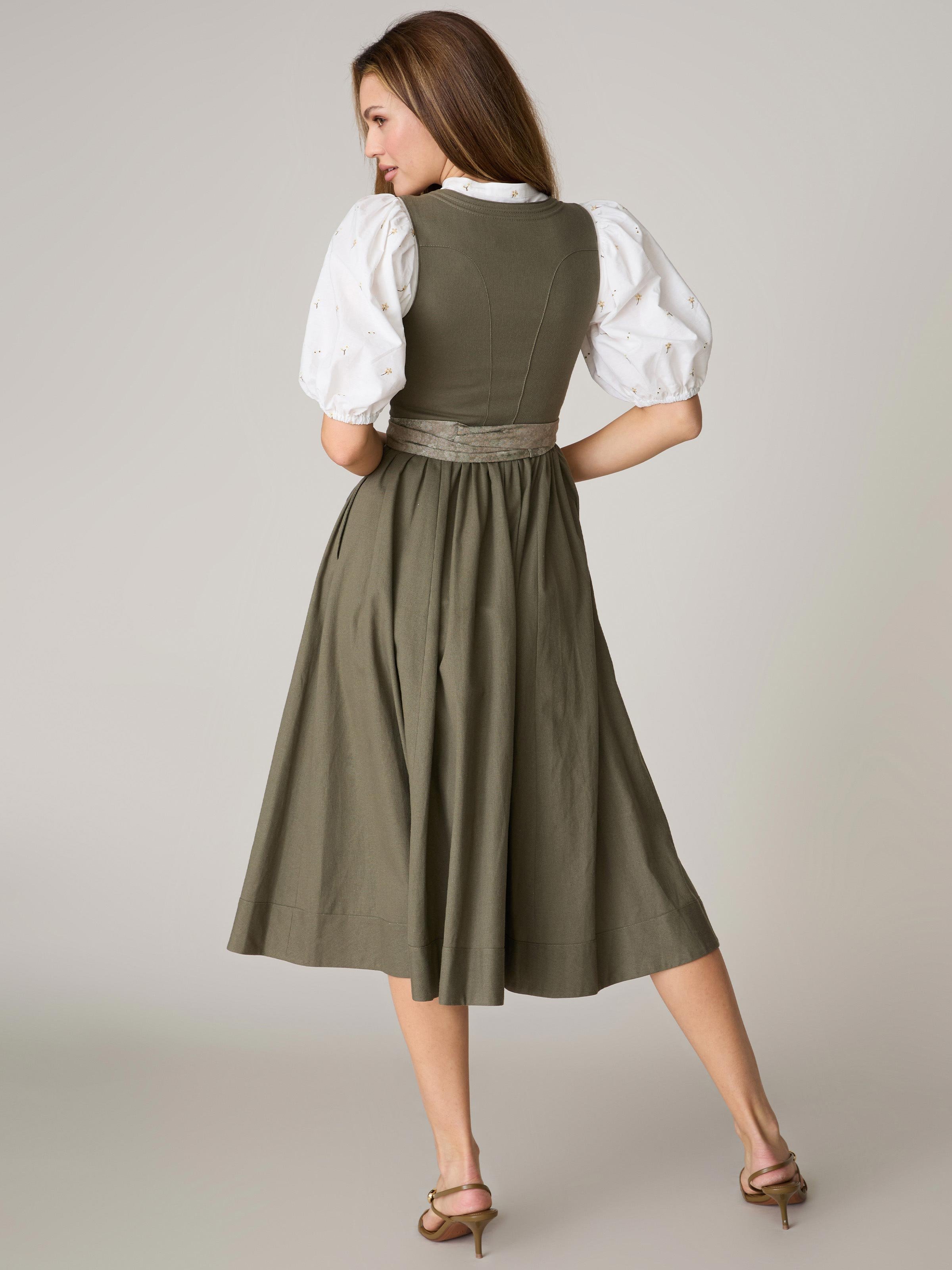 Khakigrünes Leinen-Dirndl mit Schnursteppung - AURELIE BURNT OLIVE