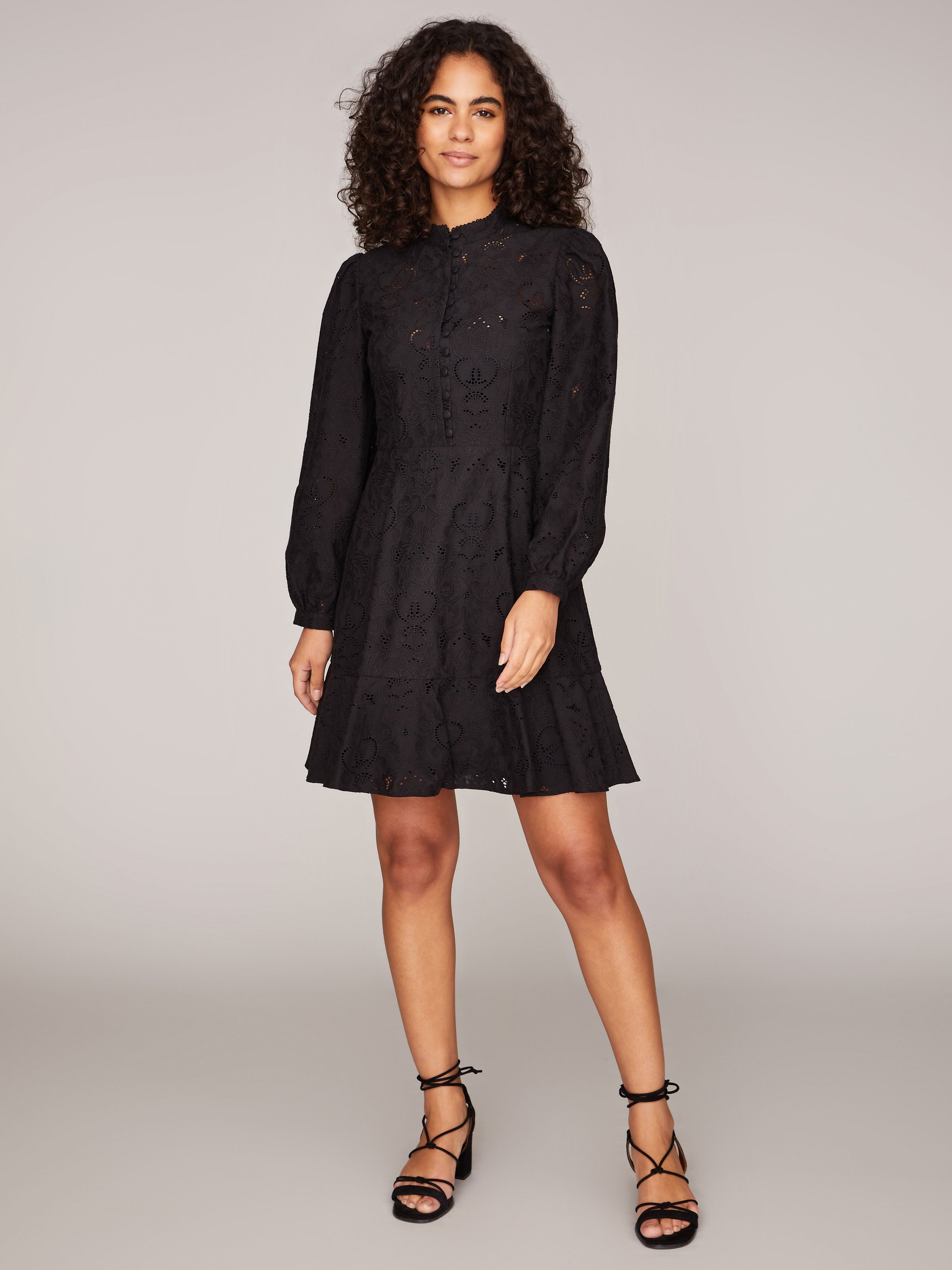 Luftiges Kleid aus Baumwolle in Schwarz von LIMBERRY. Das Modell ,,Poppy” mit aufwendiger Paisley-Stickerei ist ein absoluter Hingucker für diese Saison. Das Sommerkleid trifft damit genau den Trend. Der Stehkragen und die leicht gepufften Ärmel mit Saum wirken verspielt und elegant zugleich. Für eine perfekte Passform wird das Kleid vorne mit einer schlichten Knopfleiste mit stoffüberzogene Knöpfen und einem seitlichen verdeckten Reißverschluss verschlossen. Ein schwarzes Unterkleid wird dazu geliefert. Am liebsten kombinieren wir den Look mit Schnürsandalen oder Sneakern.