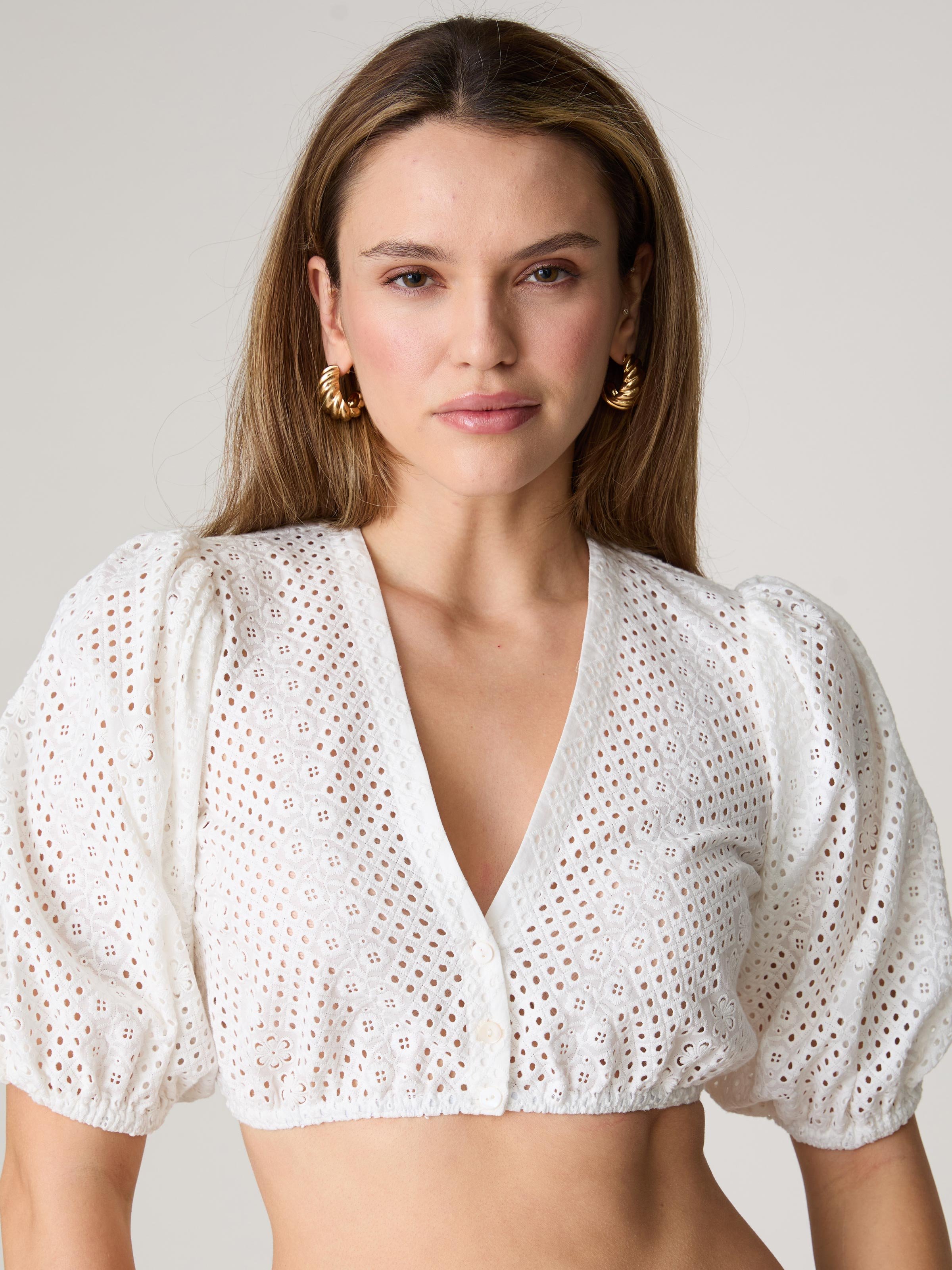 - Weiße Dirndlbluse aus Lochspitze vom Designer Label LIMBERRY